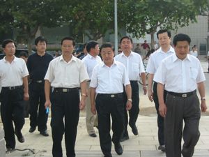 2004年8月山東省省長韓寓群同志視察指導工作 左一為集團公司董事長徐鵬強 |