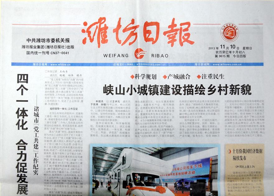 2013年11月09日,集團喬遷至高新區(qū)健康東街6999號,濰坊日報、濰坊晚報刊登集團喬遷慶典的報道。