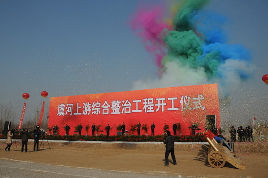 開工儀式現場,陽光明媚、彩球飄逸,河水潺潺、機械威凜,車聲隆隆、人群涌動,以“虞河上游綜合整治工程開工儀式”為背景的大型舞臺,鮮花紛芳、地毯映紅,寫有“正本清源,環保治污,綠色生態,造福民生”的巨幅宣傳標牌,在陽光的映襯下,煜煜而立,彩帶車、煙霧槍矩陣排開,100人的禮賓軍樂隊和鑼鼓隊威風左右,60臺標有“昌大建設”字樣的挖掘機、裝載機、推土機、十輪運輸車和4臺50噸吊車分列現場東西,近600名昌大員工工裝整整,方陣迎賓……一派隆重而熱烈的喜慶場景。