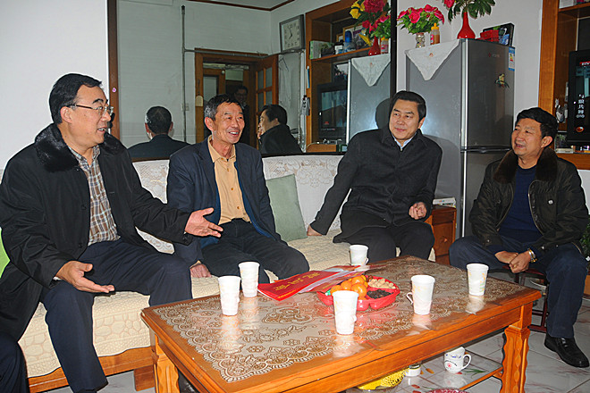 1月21日下午,濰坊市政協主席崔建平在市政協秘書長許華和市總工會副主席郭召義的陪同下,到集團公司走訪慰問全國勞模、三分公司退休職工劉洪章,送上新春祝福和誠摯問候。集團公司黨委副書記滕忠斌陪同走訪。
