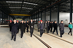 2015年12月12日上午,山東省住建廳廳長王玉志在濰坊市副市長劉建國陪同下來集團建筑產(chǎn)業(yè)園視察,陪同視察的還有高新區(qū)管委會主任宋赤鋒、濰坊市住建局局長李廣東以及濰坊市開發(fā)辦、高新區(qū)住建局等部門主要負責同志。集團董事長徐鵬強以及監(jiān)事會主席、工會主席、紀委書記穆乃杰陪同視察。 徐鵬強董事長向王玉志匯報了集團建筑產(chǎn)業(yè)園的建設(shè)情況并隨同視察已經(jīng)完工的一期PC車間。目前,集團建筑產(chǎn)業(yè)園一期PC車間設(shè)備已安裝完成,鋼筋車間設(shè)備開始進場安裝,攪拌站建設(shè)已基本完成,鋁合金幕墻車間、預(yù)制品堆場正在進行基礎(chǔ)施工。