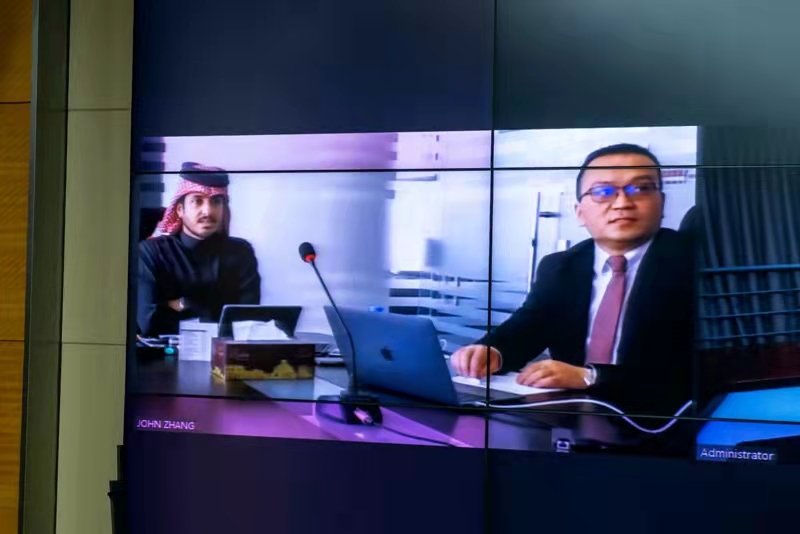 董事長徐鵬強(qiáng)、總裁朱九洲等集團(tuán)領(lǐng)導(dǎo)與卡塔爾扎伯王爺舉行視頻會議